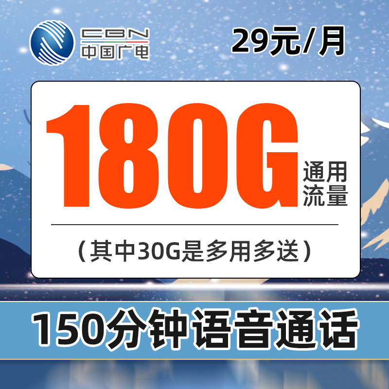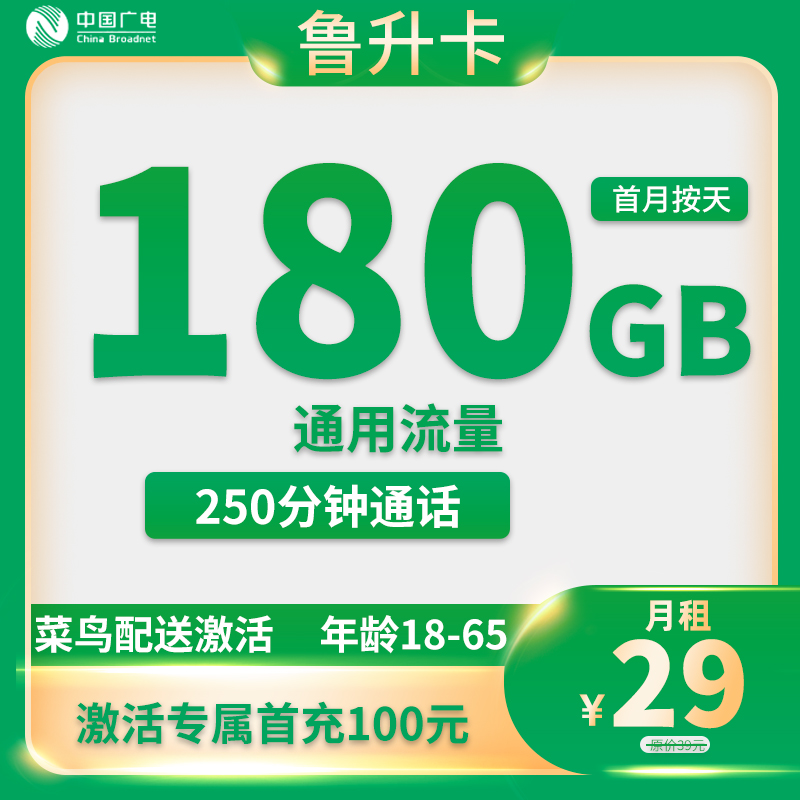 29元180G通用流量+250分钟通话【只发山东省内】