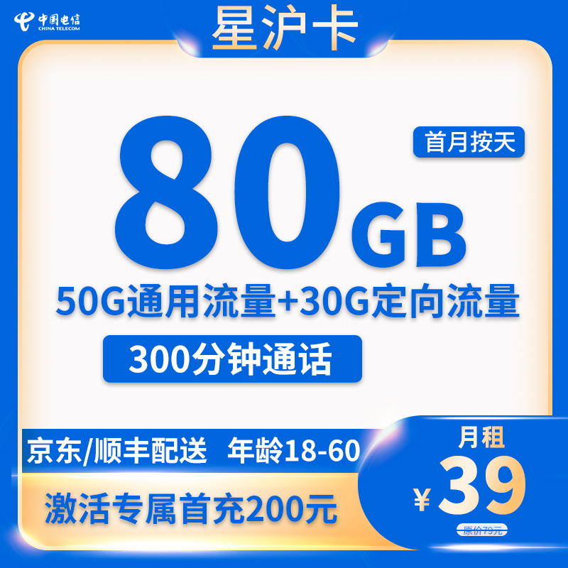 39元80G流量+300分钟通话【只发上海】