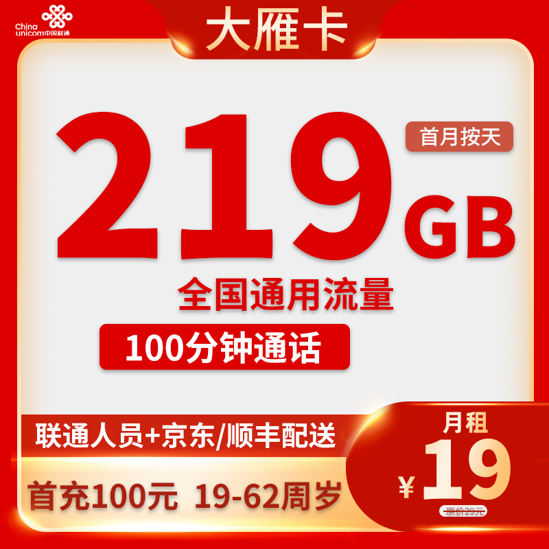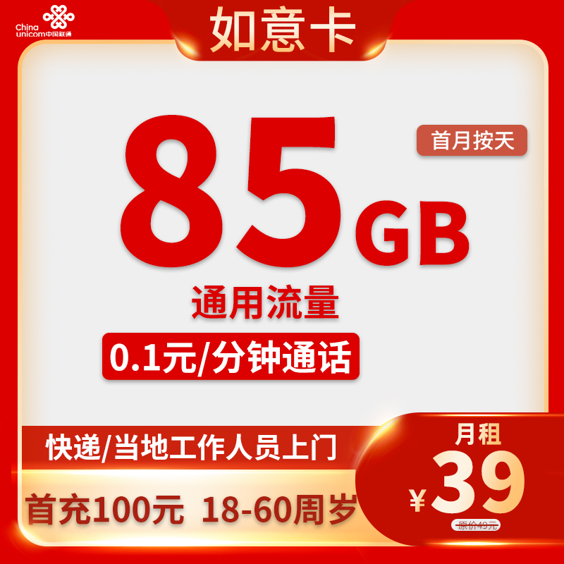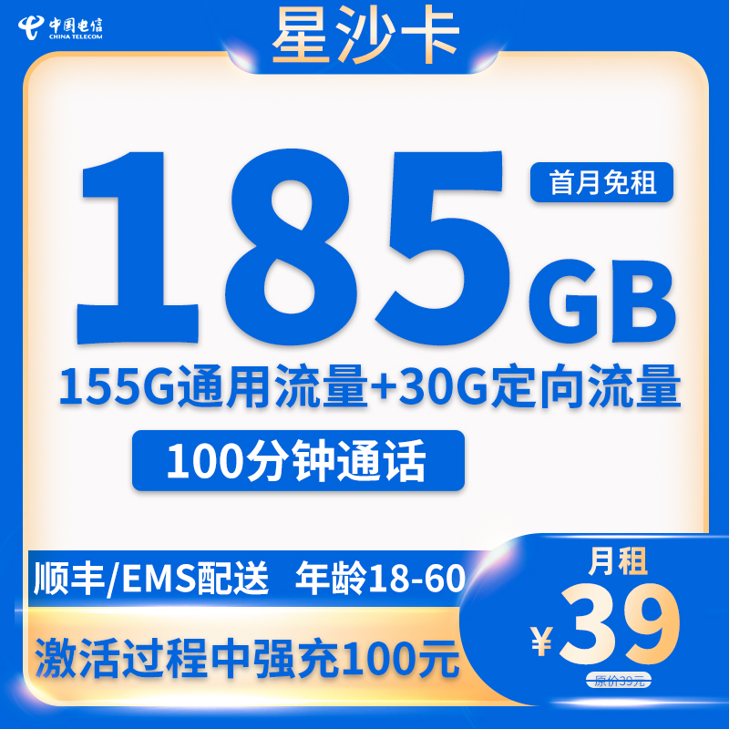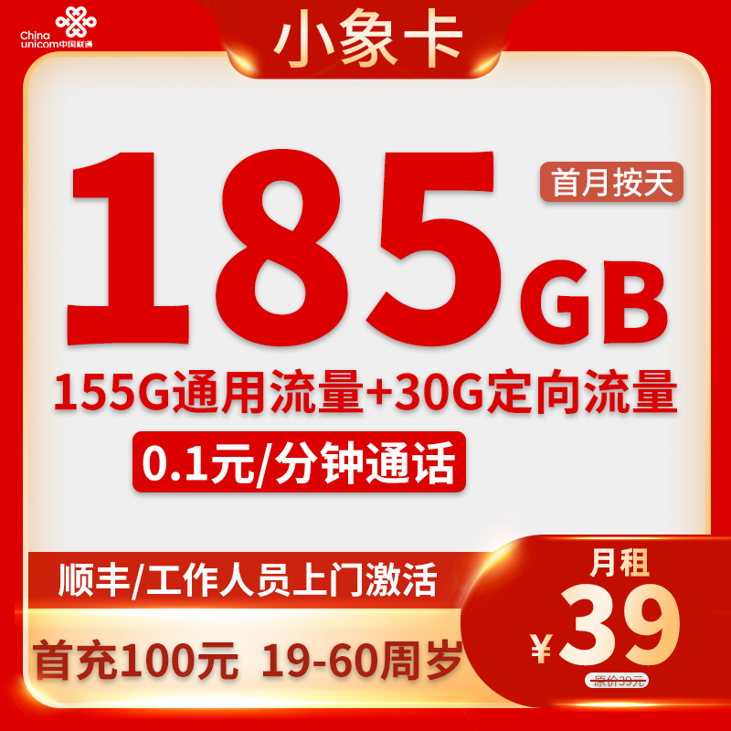 39元185G流量+200分钟通话(仅发贵州)