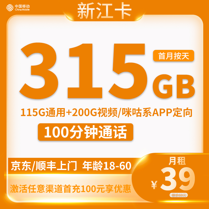 39元115G通用流量+100分钟通话【只发海南省内】