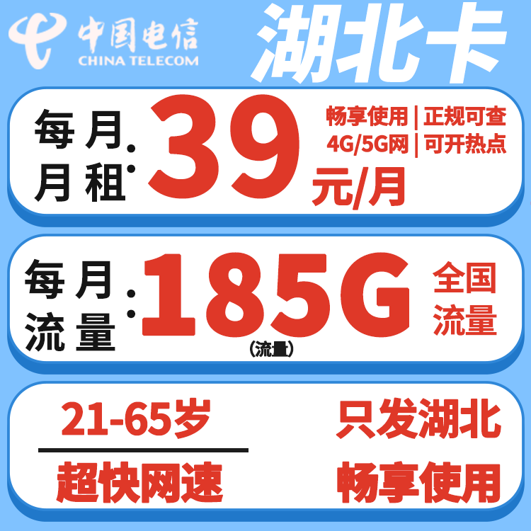 39元185G全国流量(只发湖北)