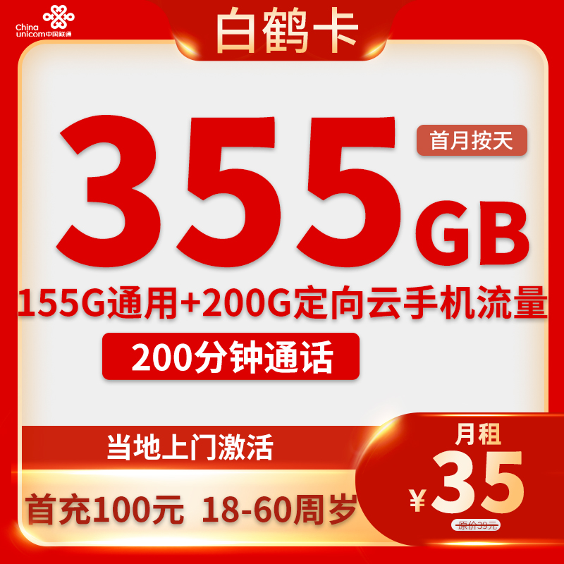 35元155G通用+200G定向+200分钟+视频会员权益N选1(只发河北)