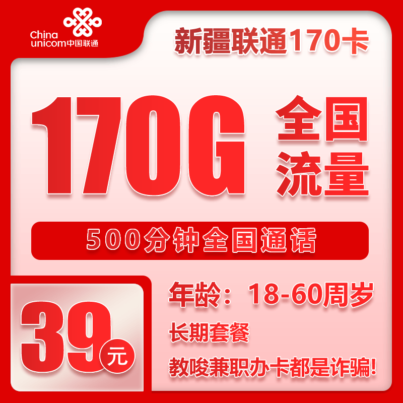 39元170G通用流量+500分钟【仅发新疆】