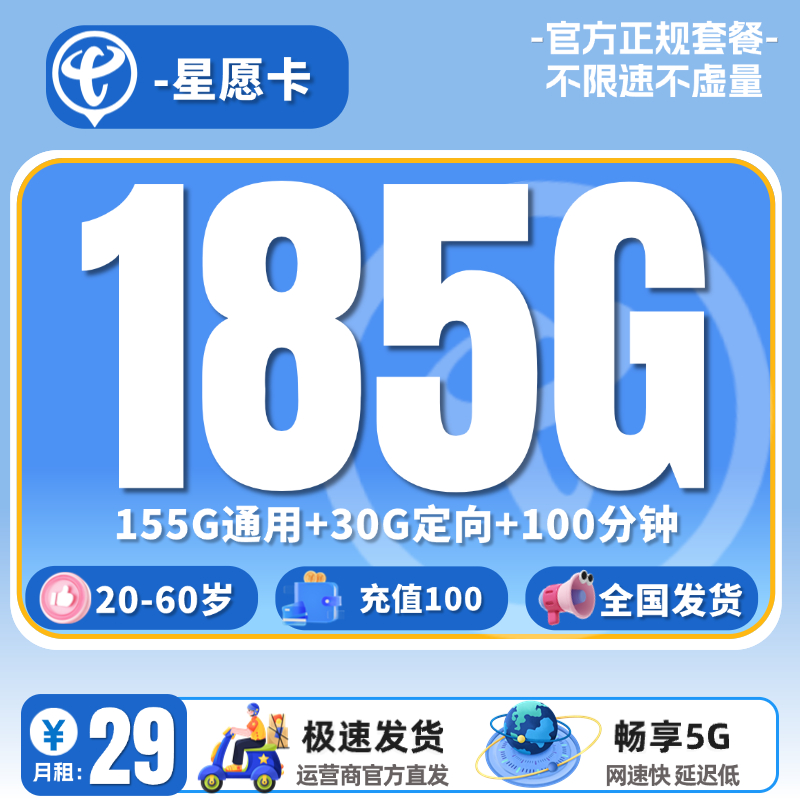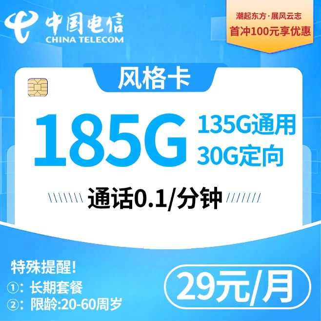 29元185G全国流量+0.1元/分钟-可发全国