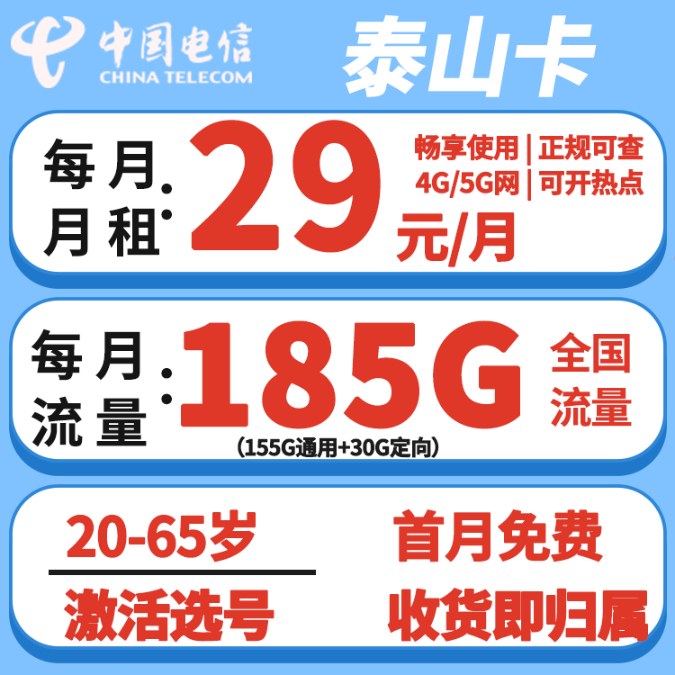 29元185G(20-65)只发山东,自选号码