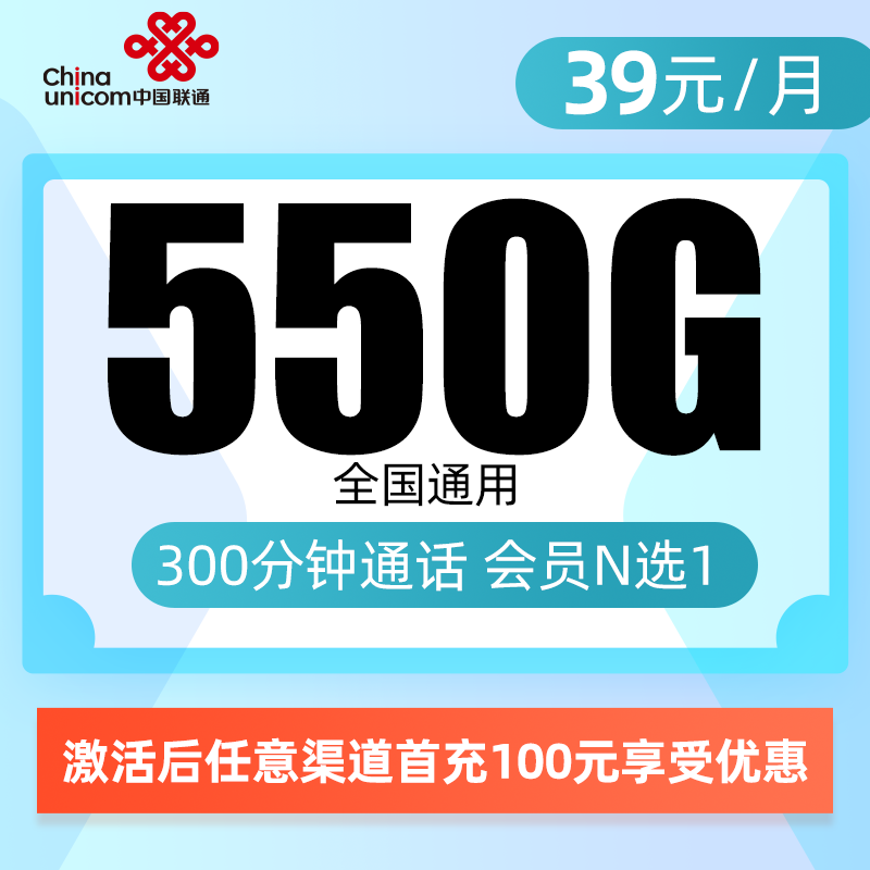 39元包550G通用+300分钟+会员(仅发四川)