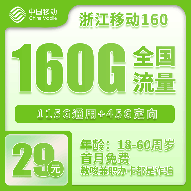 29元160G+100分钟【仅发浙江】